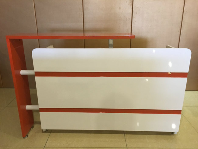 humanized design custom made green certification veneer finished small salon reception table barber shop lobby desk