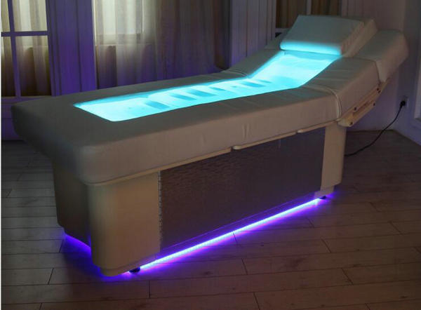 This sexy 3 motor bed combines good looks and functionality! This is a dual purpose bed - massage as well as facial. It comes with 2 spacious wooden storage drawers at the bottom . It has aesthetically appealing stainless steel motorized pillars that move the bed up and down. It features a remote control that adjusts height, back and legs and can even transform it from a massage bed to a facial bed and vice versa... with a single button push.
